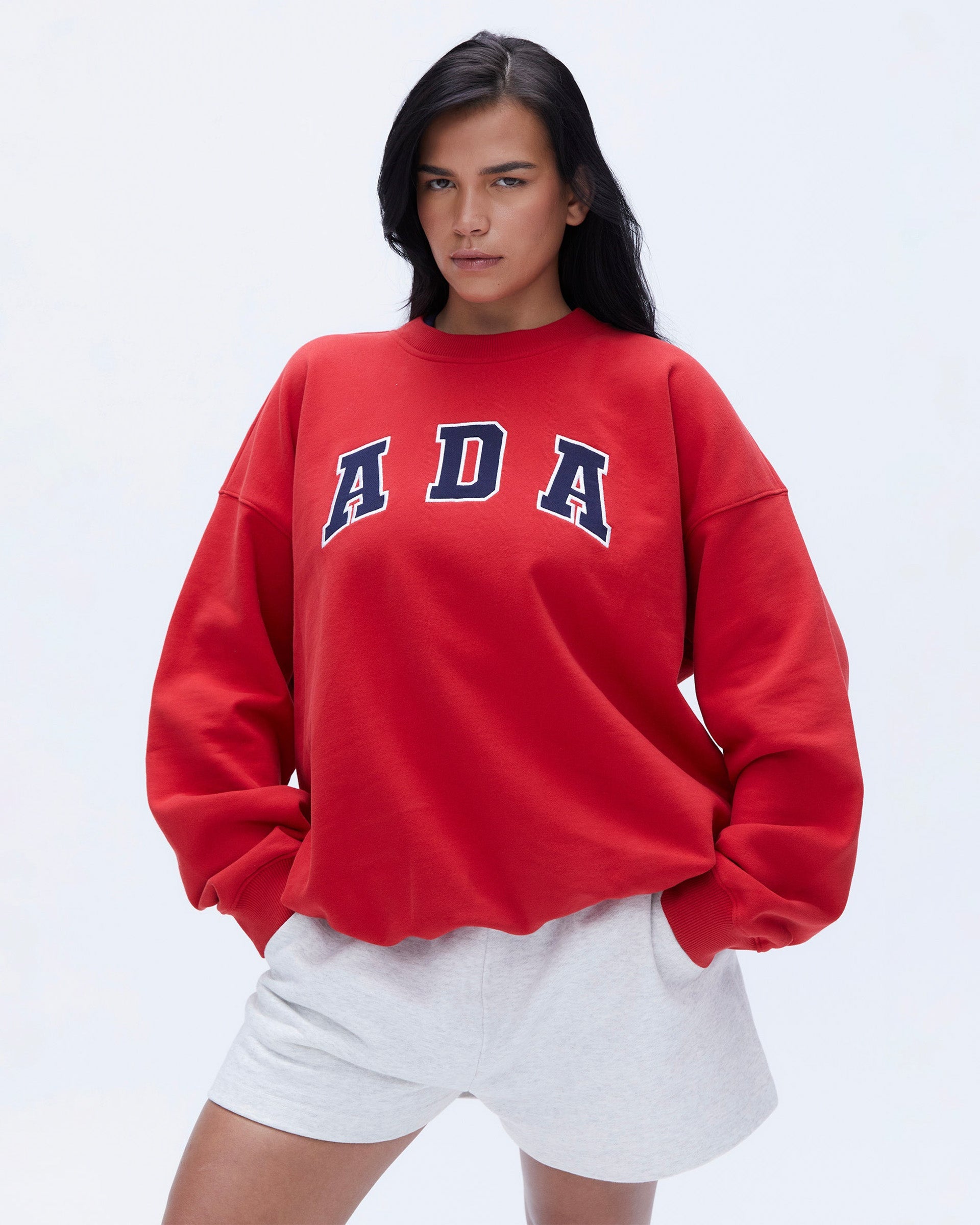 Our Oversized Sweatshirt. featuring an oversized silhouette is easy to dress up or down. Clean-cut from our new 100% Organic Cotton Loopback fabric and features an Applique Patch Logo. To get the laid-back athleisure look. style with the matching sweatpants. perfect for lounging or coffee dates.