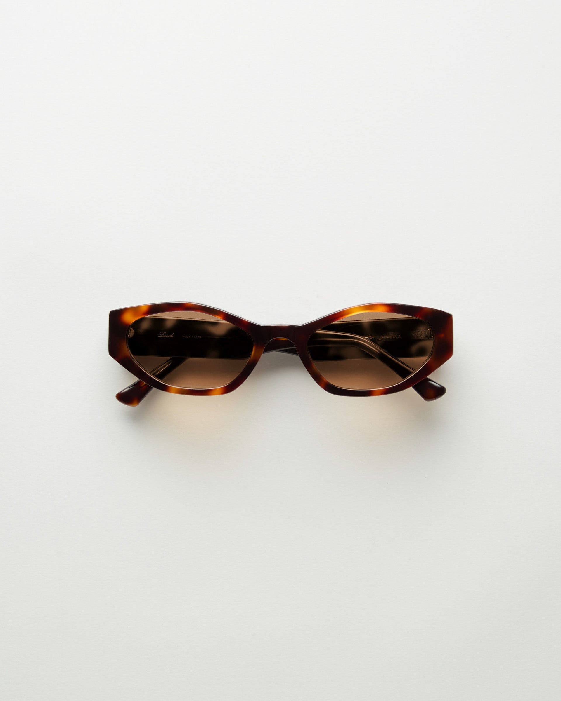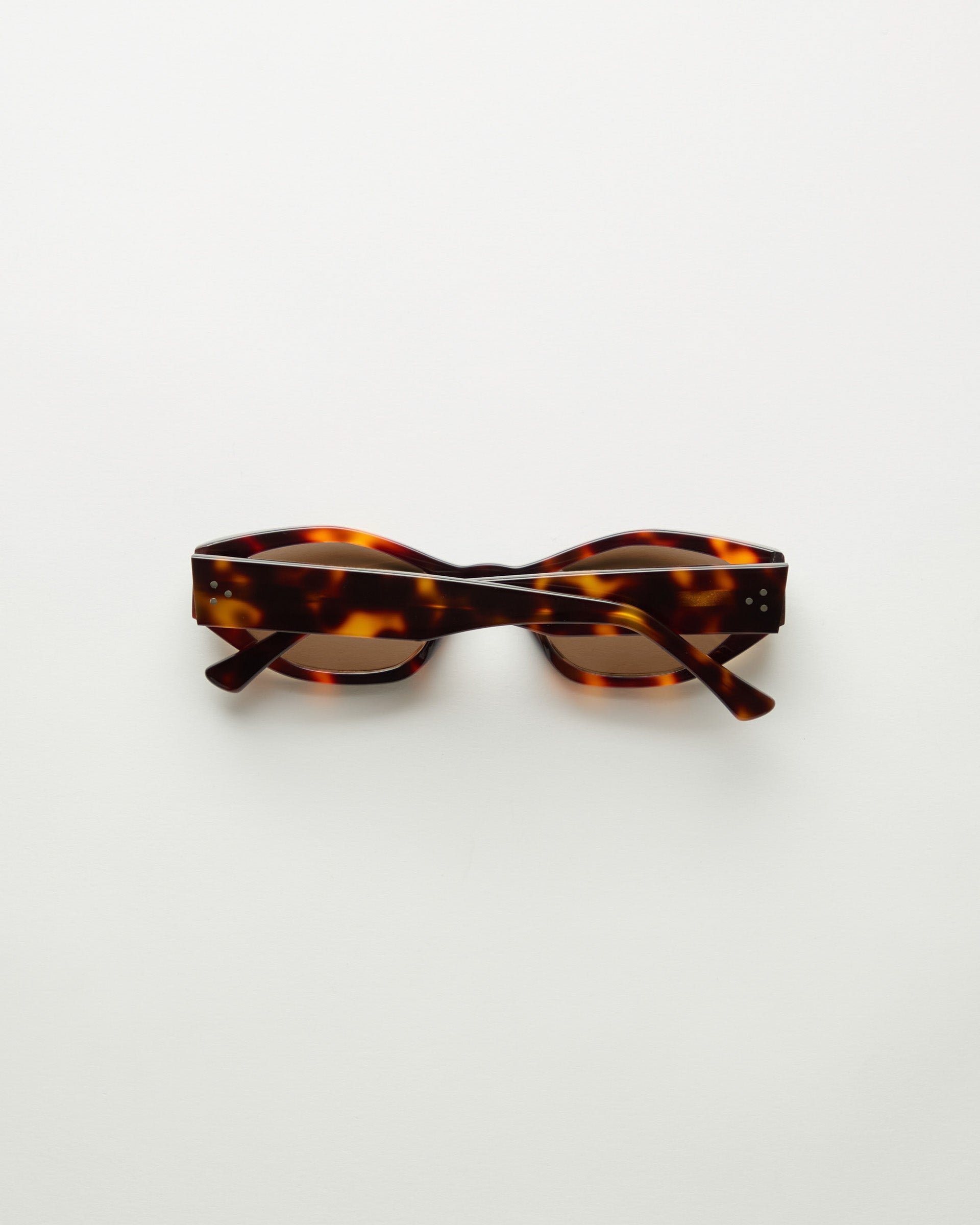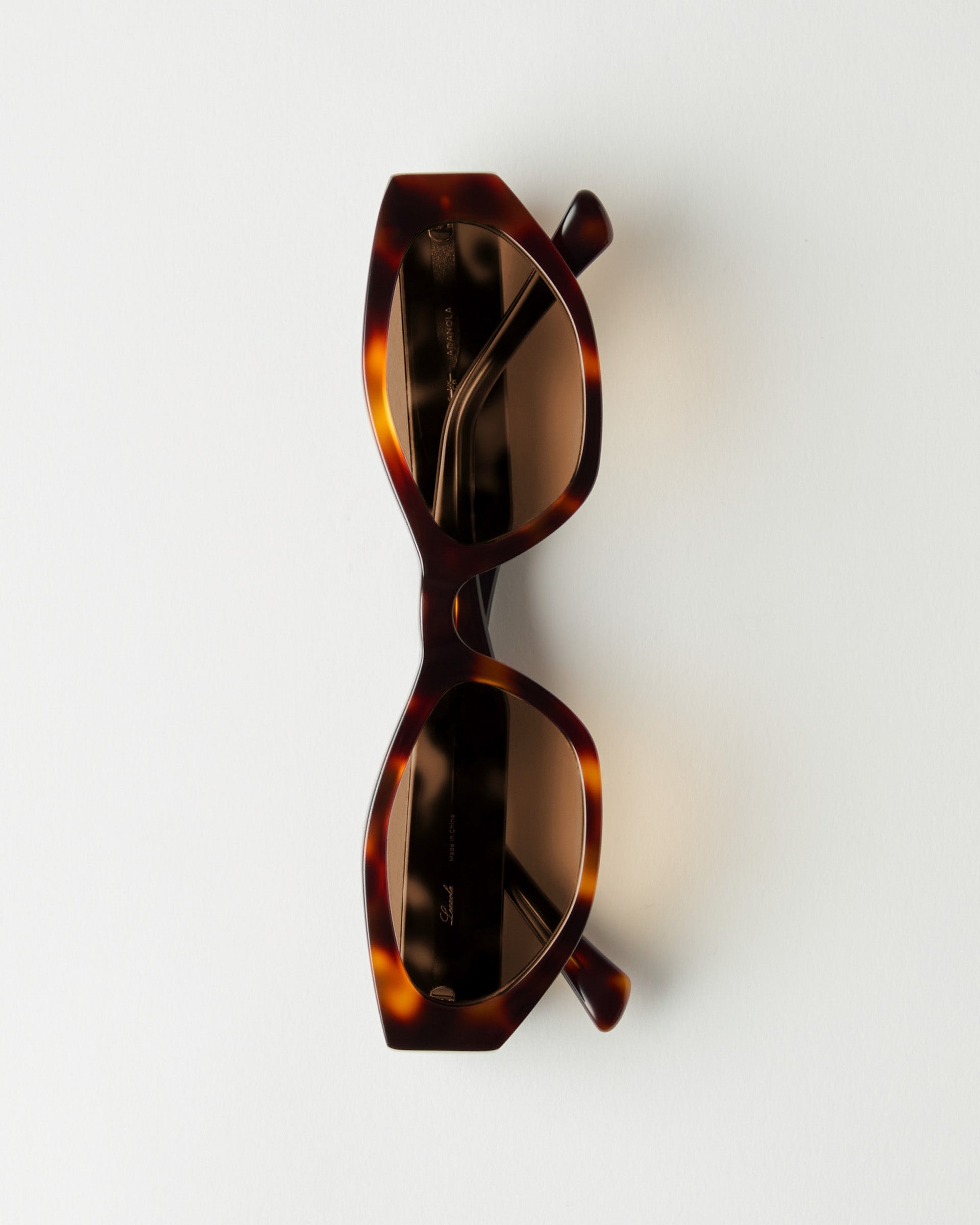 This limited collection features one classic silhouette in 3 colour ways. Designed with a sleek hexagonal shape that lifts the face with a subtle cat-eye. Available in a selection of custom colours with 100% UVA and UVB protective lenses. Frame dimensions: 140mm (temple length) x 140.6mm (front width) x 21.5mm (nose bridge) x 51.5mm (lens). The glasses come with a sleek case and a cleaning cloth.