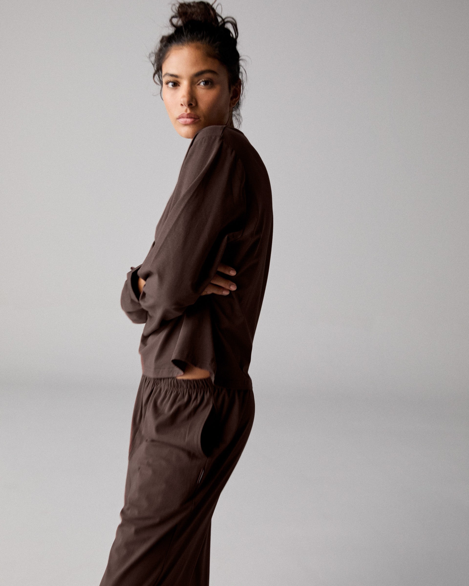 Modal Long Sleeve Oversized T-shirt - Chocolate Brown
