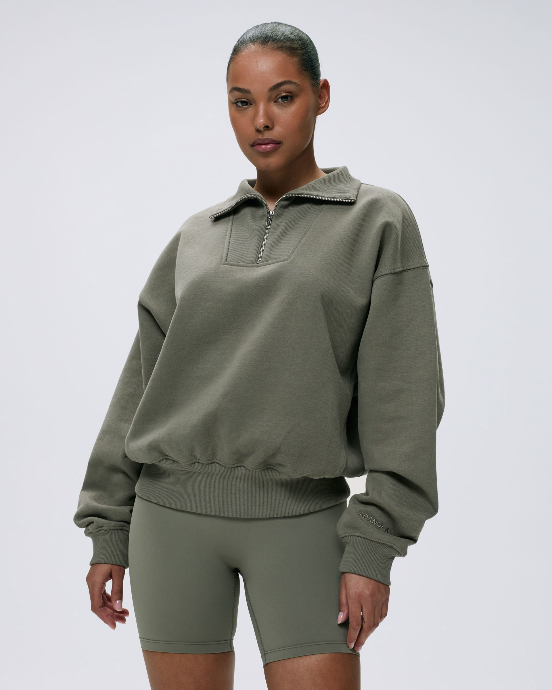 Relaxed Funnel Neck Zip Sweatshirt - Olive Green