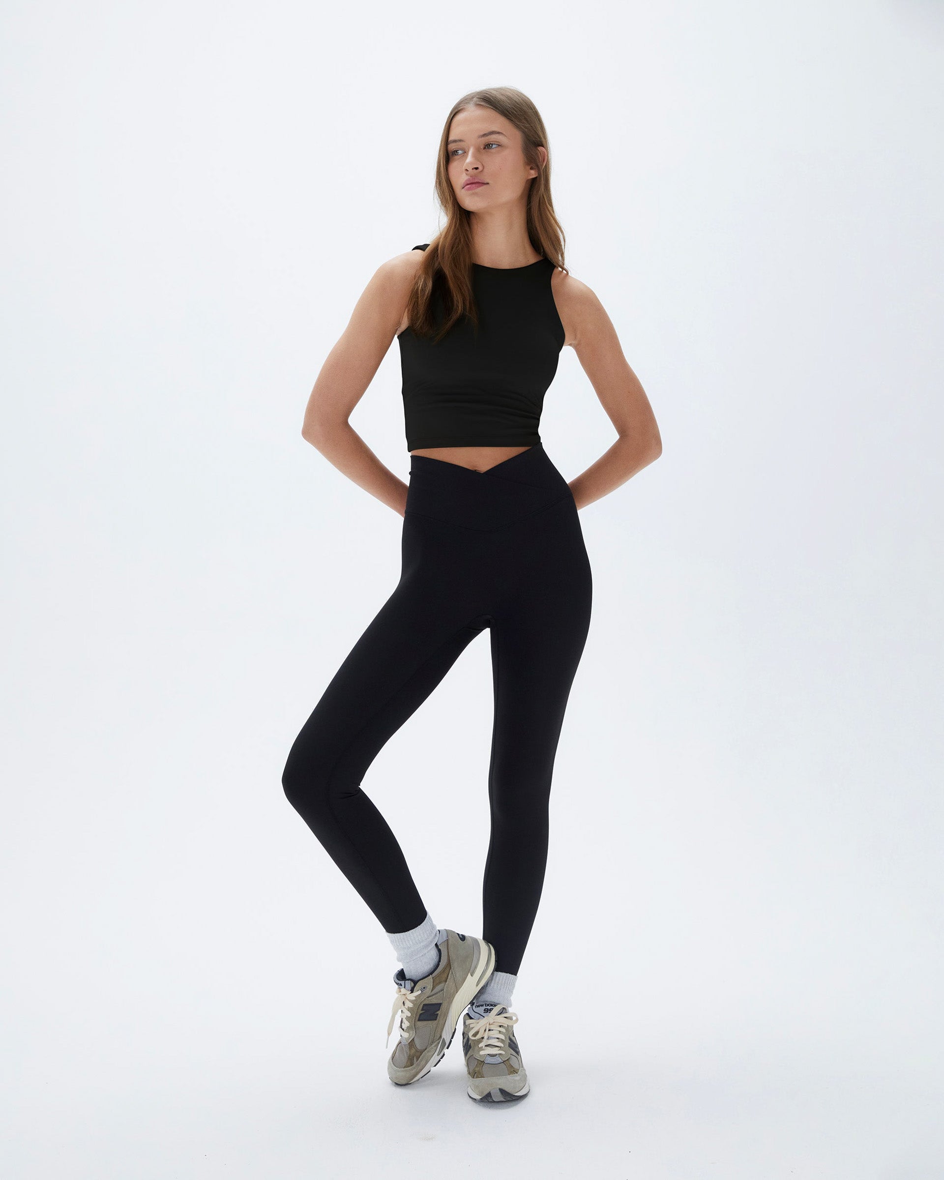 Introducing the Ultimate Wrap Over Leggings. Our classic gym leggings with a twist. We've designed these leggings with a flattering wrap-over waist band detail. These leggings are designed without a front seam. meaning no camel toe. as well as a higher waistline for extra support and to contour the body. Perfect for doing everything. every day.