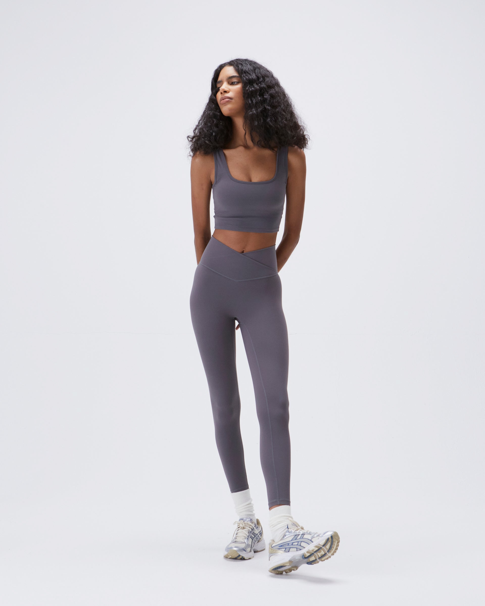 Introducing the Ultimate Wrap Over Leggings. Our classic gym leggings with a twist. We've designed these leggings with a flattering wrap-over waistband detail. These leggings are designed without a front seam. meaning no camel toe. as well as a higher waistline for extra support and to contour the body. Perfect for doing everything. every day.