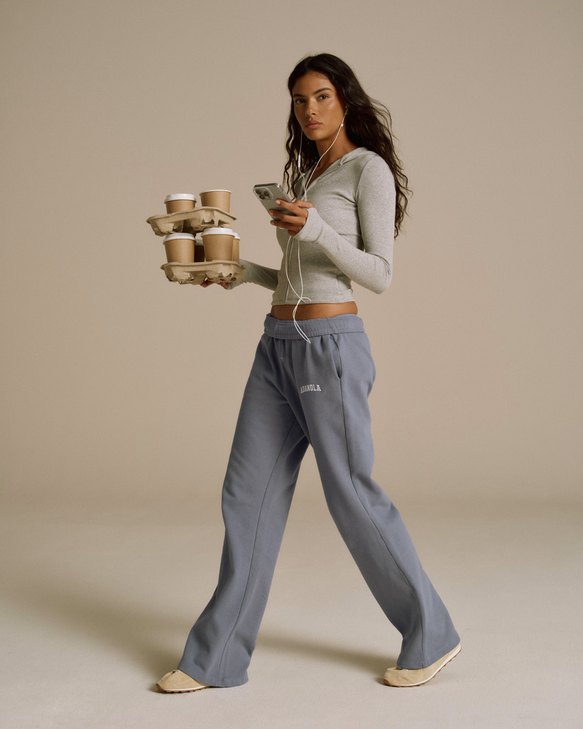 Varsity Loose Fit Straight Leg Sweatpants - Slate Blue