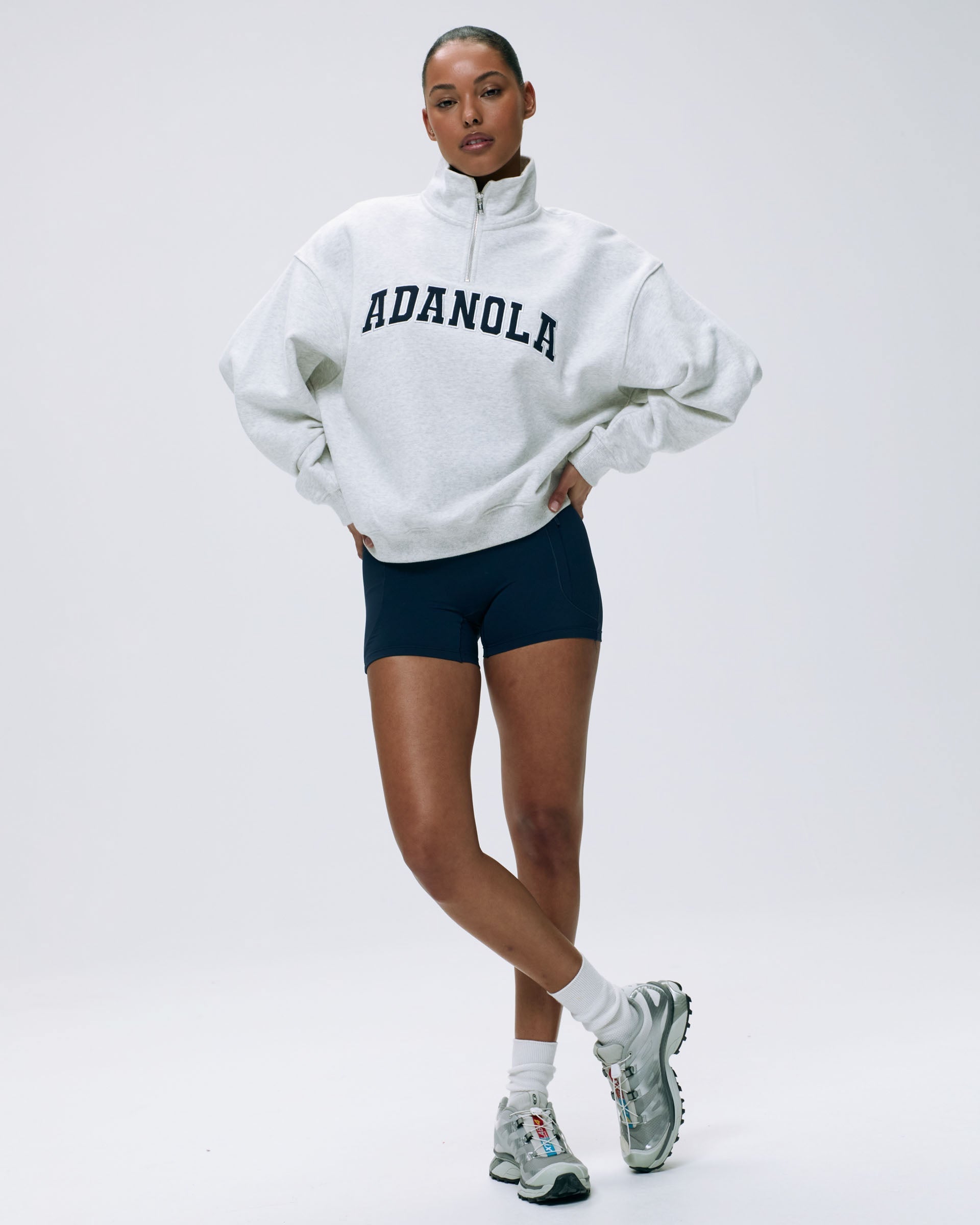 Varsity Relaxed Funnel Neck Zip Sweatshirt - Light Grey Melange/Navy Blue