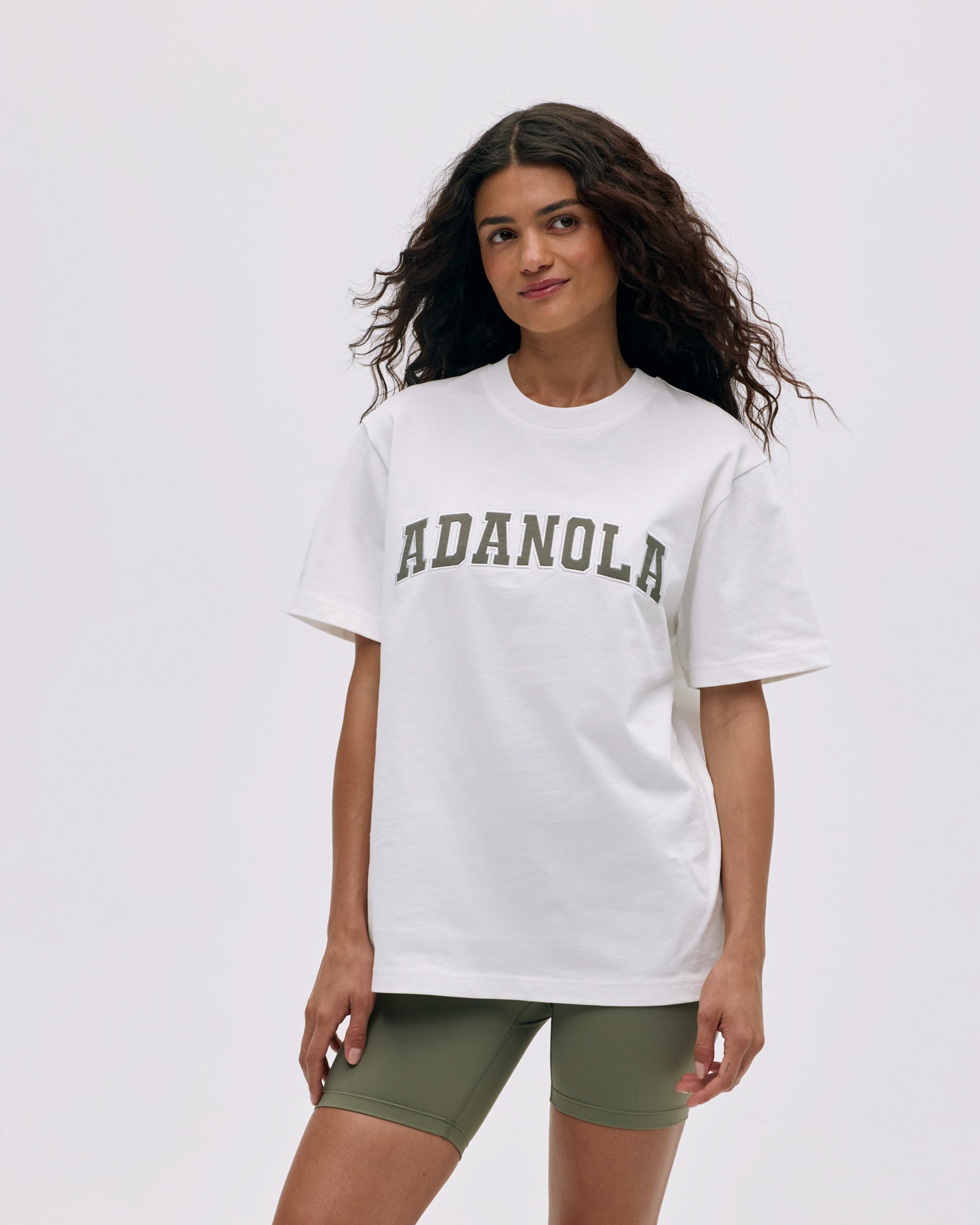 Varsity Short Sleeve Oversized T-shirt - White/Olive Green